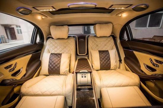 后排的空间非常的宽敞,腿部空间非常的舒适,中间的隔断可以一键升降,也可以雾化,充分保证了后排乘客的隐私,座椅全部采用手工菱形走线,非常的讲究工艺,这个级别不就是拼的就是手工,奢华,舒适。中间的双M标志时刻标识这这是一台迈巴赫,奔驰当中的奔驰。同时后排座椅支持电动调节,通风,加热,多段式的腿托,让你在乘坐时,给你最完美的享受,这样的一台奔驰加长普尔曼你们喜欢吗?