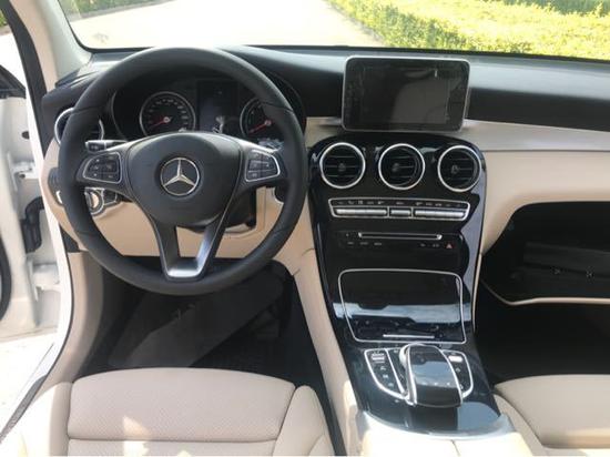 19款墨版奔驰GLC300配置:19轮,全景天窗,全LED大灯(远近光全为LED,18款远光为卤素灯,近光为LED),一键启动,ECO启停 ,导航屏,倒影,电眼,电尾门,行李架, 折叠防眩目后视镜,单碟CD,胎压检测,隐私玻璃 ,氛围灯,外部镀铬组件,真皮座椅,主驾驶电动座带记忆带腰部支撑,副驾驶电动调节。
