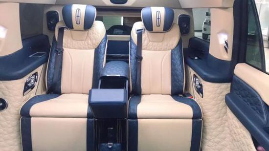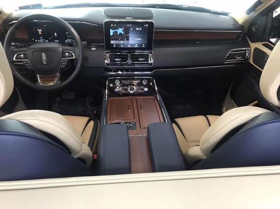 林肯领袖一号后舱内饰;整车采用4+2座椅分布,2个电动隐藏座椅+中央电动吧台组合,可以成为一个小型会议室,地板是高级柚木地板,中间镶嵌铜条,手工制作,方便打理,2个航空座椅可以加热通风,180放平。全车内氛围灯都是经过法国设计师之手,无时无刻不体现浪漫。
