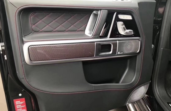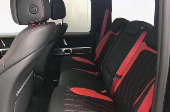内饰方面其实才全新一代G级最大的变化。新车换上了奔驰最新家族式的内饰设计,这无疑让G级拥有了旗舰 级应有的豪华感,不过经典的副驾驶席扶手和三把锁的开关键依旧延续了经典设计,并设置在中控台最显眼的位置。其中双12.3英寸高清屏,虚拟仪表盘与中控液晶屏融为一体,视觉上形成一个宽屏驾驶舱,中部的涡扇式空调出风口也颇具设计感,还大量采用了皮革的包覆。另外,新一代G级还对驾乘空间也进行了优化。