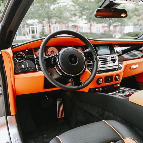 20款劳斯莱斯魅影整个内饰与古斯特 (配置|询价)完全相同,设计十分古朴,顶级材料与精致手工搭配出了顶级豪华车才有的氛围,凡是能触及的地方均有皮质或实木覆盖,三辐皮质包裹方向盘的盘辐较大,给人一种沉稳扎实的感觉,方向盘可4向电动调节,调节更加精准,但不建议您在驾驶时操作,行车电脑信息通过左侧拨杆切换,操作较为简单。