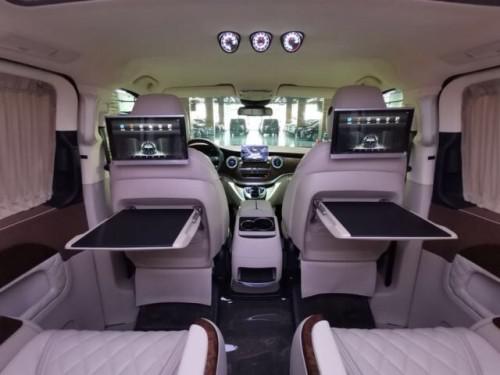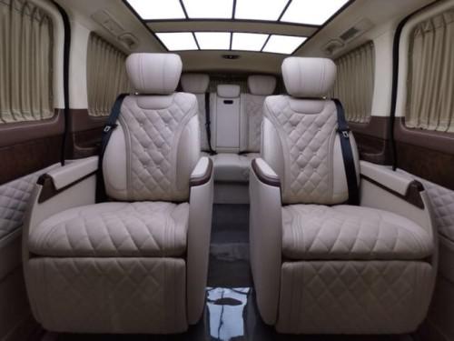 2019款进口奔驰V250商务车配置:前排负离子纳帕座椅、主副驾专用小背板、11.8寸后排娱乐(一对)、智能航空专用座椅一对、第三排沙发床(触屏)+背部四项键、仪表台(下部)包覆、桃木+皮制方向盘、涡轮出风口、主副门板包覆(一对)、中门门板包覆(一对)、车厢两侧内饰板包覆、尾门内门板包覆、车厢两侧内桃木饰条(四件)、顶饰件喷漆、顶拉手喷漆(六个)、鹿皮顶+ABCD柱+遮阳板(行云流水) 配套造型顶灯、多功能中央扶手、中排脚踏板(带灯)、个性化图案地板、进口弹性窗帘(手动)、全车隔音、铝合金踏板、镀铬门提 360环影+解码器、行李架、迈巴赫轮毂、LED大灯、小包围+日行灯、水晶标、尾门装饰条+刷中文。