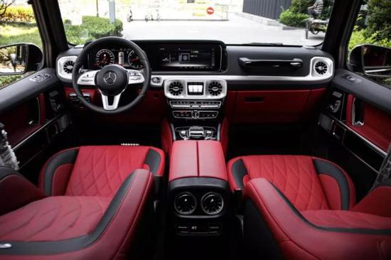 奔驰G级原先无论经历如何包装,选用各种高级材料重塑车厢,但从刻板的内饰面貌上只能传递出工具车的印记。如今进入全新奔驰G级的车厢后,能够看到最新奔驰家族化内饰设计,眼前的景象完全看齐自家SUV旗舰。车厢内除了经典的实木饰板外,还应用了金属、碳纤维和皮革等高级材质。