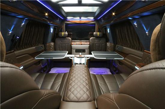 那最让老板们在意的是当然是航空座椅了,座椅靠背为分体设计,使用进口真皮包裹,2个航空座椅支持电动调节按摩,加热通风更是标配,可以180度放平,支持3节腿托,身高190都可以平躺下,腿部空间可以尽情的伸展。航空座椅中间配备5寸触控屏中央控制系统让您坐在航空椅上就能控制到整个后舱的设备,科技感十足。