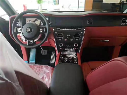 2019款劳斯莱斯库里南 (配置|询价)搭配全LED光源灯具,矩形前大灯组以及方正的车头线条等都透露出劳斯莱斯特有的本色。2019款劳斯莱斯库里南整体保持了劳斯莱斯家族车型的一贯特征,经典尊贵的对开门设计,前杠底部带有黑色加银色的护板套件,七辐式深色轮毂运动感强。