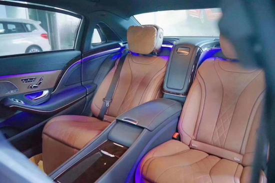 19款迈巴赫S680虽然在尾部和奔驰S级 (配置|询价)轿车并无太大差异,但却比奔驰S级长305mm,车长和轴距甚至大于宾利飞驰和劳斯莱斯古斯特。像飞机上的商务舱一样,迈巴赫的后排座椅通过抬高顶部增加头部空间;特殊的密封材料保障行车中的安静;在两个后排座椅的中间嵌入了中控台控制面板;全景天窗可以让自然光照射进来,如果不想让行人窥探车内,只要按下相应按键即可。2018款奔驰迈巴赫S680配备了头等舱级后排独立座椅、带V12标志的天鹅绒脚垫、后排电话装置、后排折叠桌、冷藏箱、互联网功能、分屏显示系统、电视信号接收器、触摸板和Burmester(柏林之声)顶级3D环绕立体声音响系统。