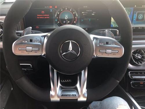 奔驰19款全新G63内饰方面,新G63保留了新G500的整体设计,除配色差异外,新车还换装了全新造型的平底式AMG运动方向盘,其两侧配以打孔皮质包裹,下部镀铬装饰的造型也与新G500明显不同,看上去十分战斗。此外,全液晶仪表盘+中控大屏的双12.3英寸屏幕设计在新车上也没有缺席,营造出了浓郁的科技感。