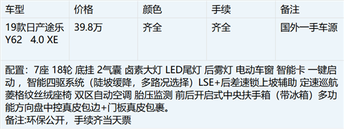 2019款日产尼桑途乐4.0 Y62中东版全是披着日产皮卡的豪华野兽,展现出标志皮卡应该拥有的所有气势。19款日产途乐Y62中东4.0满足越野爱好者长途跋涉,穿沙,穿越,只是低调的它掩盖在了陆地巡洋舰和帕杰罗的辉煌之下。