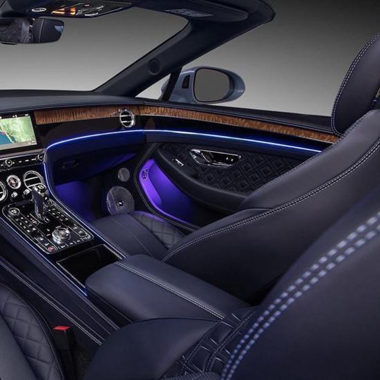 驾驶和副驾驶位置四周采用连续环绕式手工饰面,从仪表板向两侧延伸到车门。车内特色设计与车身外部线条交相辉映,使敞篷状态下的整体造型更加精美流畅、浑然一体。从双色饰面和菱形滚花设计,到令人惊叹的宾利三面翻转中控面板,全新欧陆 GT 敞篷版内饰诠释了英伦超豪华汽车的精湛手工技艺。