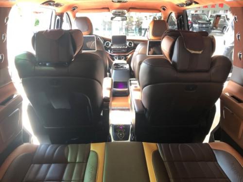 2019款进口奔驰V250商务车配置:小窗侧拉窗、全车镀铬套件、V-class (配置|询价)大灯和尾灯、日间行车灯、顶部行李架、实木高光装饰件+涡轮出风口、全车内饰镀铬装饰套件、四门奔驰原厂门提、全车内饰真皮包覆、曲面九宫格顶灯、奔驰原厂分体休息脚踏、四门镜面迈巴赫迎宾踏板、咖啡真皮仪表台、手动窗帘、进口翻毛绒顶棚、进口纯羊毛地毯、行政会议桌、12.1英寸后排头枕娱乐屏、前排奔驰原厂扶手加12L温控冰箱、前排电动座椅手改电带通风加热、迈巴赫旋转电动航空座椅奔驰原厂开关、第三排180°电动沙发床奔驰原厂开关、后排折叠小桌板、倒车影像。