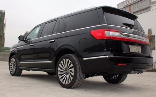 2019款林肯领航员 (配置|询价)BLACK LABEL的前脸首次采用了林肯家族全新的设计语言,星辉式前格栅搭配王冠式LED自适应前大灯,大气稳重。大灯的造型、车窗的轮廓、车顶的线条、车侧的腰线、甚至车身上的镀铬饰条,都是以“平直”为基准,方正间更显霸气。车窗与车身的比例呈现最佳的视觉效果,配合22英寸的大尺寸车轮,身材的“庞大”不会给人笨重的感觉。我们这次体验的是总统系列的全新领航员,风火轮造型的轮圈与Navigator概念车保持了同款。