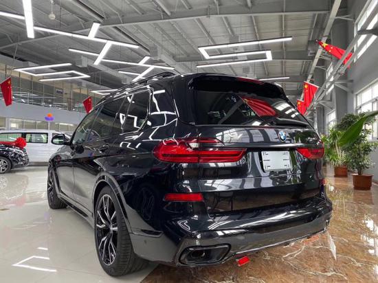 2020款加版M宝马X7 (配置|询价)颜色:黑宝石金属漆/咖配置:22轮,豪华卓越包,M运动包,铝制踏脚板,7座配置,宝马个别精品木灰粒银,黑色前侧发动机罩,液晶钥匙选配:卓越豪华包(前排座椅通风 前座椅按摩 星光全景天窗 施华洛世奇水晶档杆套件 BMW激光大灯 18项座椅电动调节 纳帕真皮仪表盘包裹 躲避辅助系统 车道保持 驾驶辅助acc雷达自动巡航 方向盘和道路控制 前十字交通辅助 电动后侧窗遮阳帘 冷热杯架 360环影 电吸门 抬头显示 5区空调 三排座椅加热 方向盘加热 ) M运动包(M运动刹车 M运动排气 M空气动力学套件 M运动套件 M运动刹车蓝色卡钳 M运动轮 M运动方向盘)
