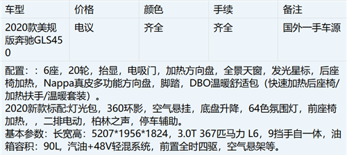 2020款全新一代奔驰GLS (配置|询价)450大灯设计更加圆润,不再棱角分明,内部由两个双棱形灯组组成,并在上方配以柔顺的LED日间行车灯,即便在白天也有很高的辨识度。新车内部融入了更多的木纹饰板以及皮质包裹,仍旧秉持奔驰典雅高贵的气质,同时作为一款SUV越野车,同时,凭借着精致的内饰做工和卓越的驾乘品质一直有着不错的口碑。