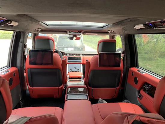 19款路虎揽胜行政版内饰均采用精心设计及精湛工艺,并选用最为顶级的皮革及材质,仪表板、手套箱盖、中央通风口四周、车门内饰板和方向盘后均采用全真皮包裹,甚至驾驶者的膝部气囊的外层也同样采用了真皮装饰。路虎揽胜行政版中控台更采用了双画面显示屏设计,驾驶者在使用GPS导航的同时,副驾驶乘客可以欣赏DVD影片。
