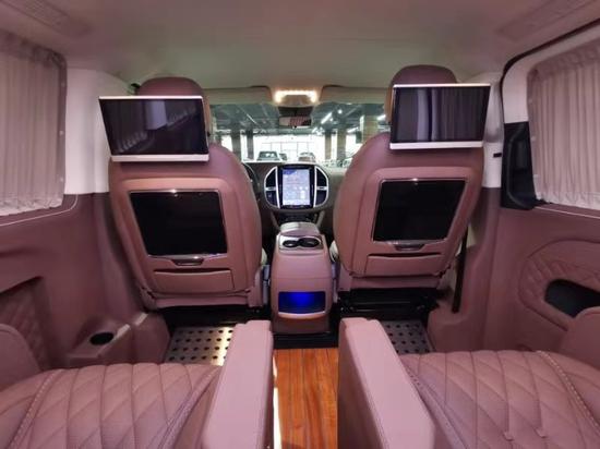 第三排座椅为标准的电动沙发座椅,可以通过隐藏在靠背中部扶手上的控制屏对座椅的靠背、腿拖进行控制调节,必要时可以完全放平,形成一张豪华双人大床。其绝佳的空间设计,让商务出行更加舒适放松,可调整的座椅设计能根据实际需求灵活改变,满足各种类型的使用需求。