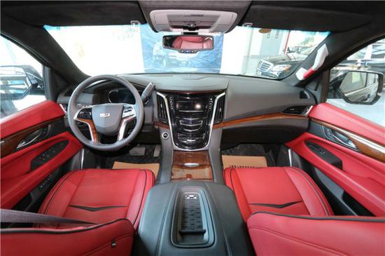 2019款凯迪拉克总统一号驾驶舱借鉴了商务车型的设计手笔,大气高雅。全车采用2+4座椅分布,全车采用酒红色为主色调,低调不失奢华。方向盘使用桃木真皮包裹。座椅支持电动调节和加热。中控导航下有一个隐藏式的储物格,用过的老板都知道这还是一个小冰箱,轻轻一划就打开了。