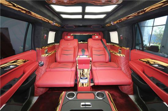 在内饰配置上,凯迪拉克总统一号内部配备了真皮桃木内饰,高级地毯,高级豪华的异域吧台,5寸触控屏中央控制系统,影院级bose音响。32寸三星高清电视作为可升降分隔屏,方便与前方乘客沟通,如果麻烦,座椅旁边也有对讲电话,保护后排的隐私。