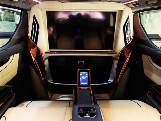 丰田埃尔法蒙娜丽莎隆琦四座MPV内饰方面,新款内饰奢侈惊人,丰田埃尔法蒙娜丽莎拥有三面向头枕、独立扶手、扶手置杯架、多功能折叠桌,以及椅背最大178度仰角,前后共拥有450mm滑移长度与高度脚踏垫设计。且丰田埃尔法蒙娜丽莎隆琦四座MPV内饰是采用耐脏的红色覆盖全车,使得整体少了一些豪华感和科技感。超级奢华的隔断设计,配上24寸电动车载电视、音响系统以及豪华吧台酒柜,让埃尔法变成了一款商务休闲一体车,豪华感与科技感瞬间爆棚