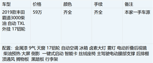 2019款丰田霸道3000柴油中东版款经典硬派越野车。是把越野性能体现的淋漓尽致的越野车。丰田霸道3000这款硬派SUV的采用了菱形前大灯取代了老款的三角形大灯设计,霸道3000标配了无钥匙启动,和智能卡。更有卓越的操控性能。也配置了制动辅助功能。19款丰田霸道3000中东版款经典硬派越野车。是把越野性能体现的淋漓尽致的越野车。