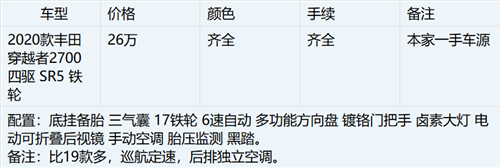 20款丰田穿越者2700全身硬朗的棱线设计更是振奋人心,体现它对完美的追求。新车别具一格的全新多角度反射式组合前灯,与线条自然简洁的前格栅护栏完美映衬,有种别样风采。纯粹的坚守着越野本分,一切动力系统都是为越野所服务。设计很简单,但最适合复杂路况,虽然车体很高,但是行驶稳定性是超乎你的预期的,真正的越野者之车。