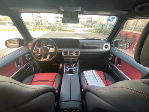 2019款G63保留了新G500的整体设计,除配色差异外,新车还换装了全新造型的平底式AMG运动方向盘,其两侧配以打孔皮质包裹,下部镀铬装饰的造型也与新G 500明显不同,看上去十分战斗。此外,全液晶仪表盘+中控大屏的双12.3英寸屏幕设计在新车上也没有缺席,营造出了浓郁的科技感。