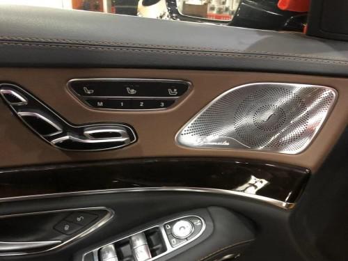 19款迈巴赫S560进入车厢内处处弥漫着豪华的氛围,中控台上有大面积的真皮包覆,同真皮座椅一样采用了菱形缝线的设计,哑光银饰和实木饰板的加入,使得整个中控区域更富有层次感,只是三幅式的多功能方向盘不如两幅式那么有岁月感,缩小了环身显然更偏向运动。仪表盘和中控屏同普通的 S级 一样采用了合二为一的双12英寸液晶设计,中控屏下方还布置了一块价格不菲的万国表。