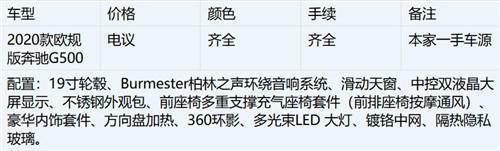 2020款奔驰G500全新一代奔驰G级 (配置|询价)保留了延续39年的经典方盒子造型设计,硬朗的线条、出色的越野性能让它成为了很多消费者心目中的Dream Car。与上一代车型相比,它的外形做了一些调整,比如前格栅换装了三横幅式装饰,更换上全新的LED大灯,保险杠的设计也有明显的变化。它运用了全新的钢铝混合结构,质量相比现款车型下降170kg,但车身刚性却提升了55%。