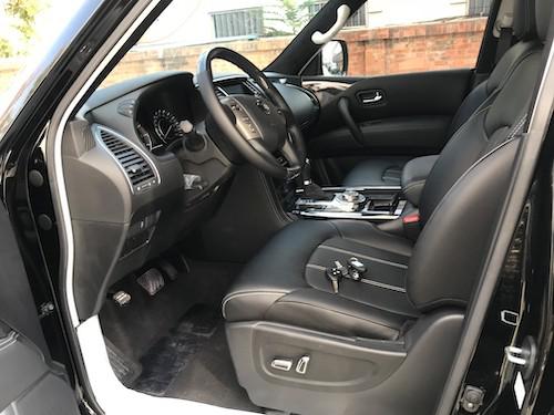 内饰方面:途乐为三排座车型,内饰整体风格豪华,真皮座椅、DVD娱乐、上下坡以及胎压监测等装备也都悉数出现。日产尼桑途乐内饰材质也更加的考究,使用了皮革,铝以及木纹样条作为点缀。中控部分的设计比较具有豪华感,标准日系豪华车的风格,BOSE音响是很多中高端车所选用的,音响效果不会让你失望。车内后视镜就是2018款另外一个有意思的升级,这块后视镜带有液晶屏幕,可以播放尾门上方新增那只后视头的图像。