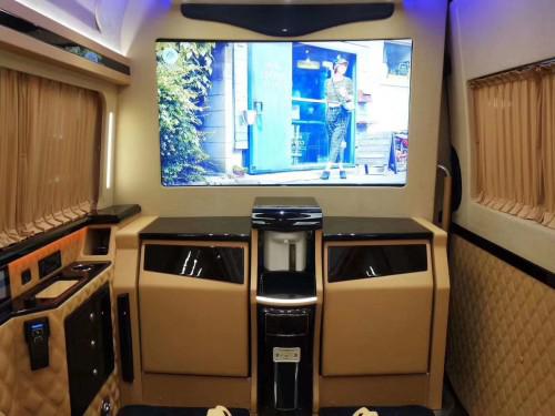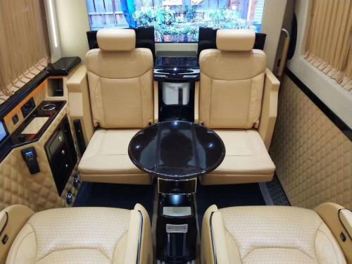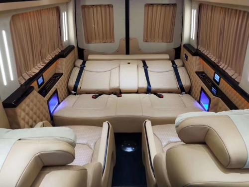 2019款进口奔驰斯宾特商务房车整车尺寸5910*1993*2800mm,车内空间宽阔,整洁美观,真皮制作,柔软舒适,驾驶舱与乘客舱全隔断分开,但雾化玻璃解决了互通的问题,乘客舱独立座椅具备电动加热、按摩、通风等功能,可多方位调节,后排沙发座椅可以平躺成床,中排与前排之间可以添加桌板,成为移动办公室,车舱顶部配置LED灯光七彩变化,遥控控制定格颜色,可以是功成后的祝贺模式或放松心情的治愈模式。