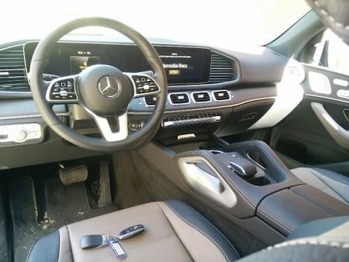 20款奔驰GLE450延续了现款的造型,用的是贯穿式中控台双屏设计,12.3英寸的双液晶显示屏带来的科技感爆强,并且搭载了奔驰最新的MBUX人机交互系统,采用搪塑,皮革,实木,金属和碳纤维材质,三幅式平底方向盘动感十足,让人有一种飞翔的感觉 .全景天窗。