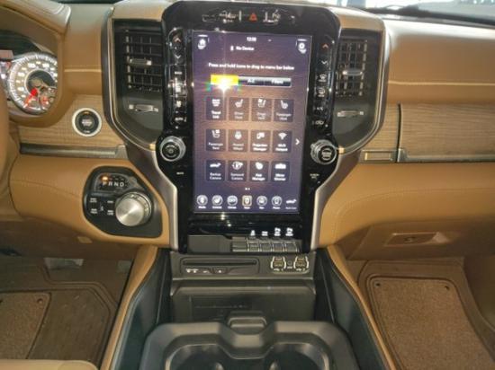19款道奇公羊大角牛皮卡在内部设计上还是延续了美式那种比较粗犷的风格,规整的中控台设计看上去比较死板,但丰富的配置会让你不由得为其称赞。中控台的设计简洁硬派,符合公羊的气质。仪表盘底边有花纹,则更加凸显了这款车的文雅性。软性材质的仪表台设计,摸上去手感非常舒服,并无些许生硬之处。