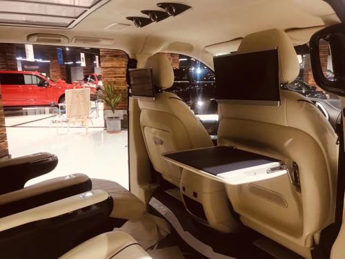 2019款进口奔驰V250商务车也可定制改装成全隔7座隔断设计,一键式32寸高清液晶升降电视,搭配影院级音响系统,前后舱隔断航空铝材,保证独立私密性,液晶屏可升降,保证随心所欲交流与兼顾隐私空间。