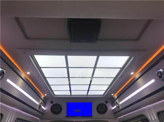 长宽高5370*1928*2050mm,纵向空间大,前后舱未隔断,全车7座设计:2驾驶座+1福祉座+1独立座椅+3人连排沙发(可电动变床),一家人出行,均享有独立的腿部和头部大空间。