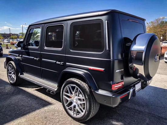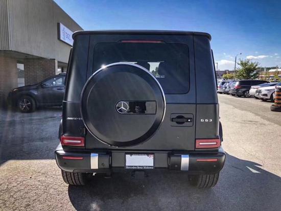 车尾,后挂设计直观彰显它的越野地位,两侧的小标志则直观显示了这款车的车型身份。矩形的红色尾灯与方正的车身造型形成呼应,点亮后的辨识度非常不错。有着AMG性能排气系统,带来更刺激的声浪体验。同时它还带有AMG控制自适应阻尼架,让它有着更好的通过性。