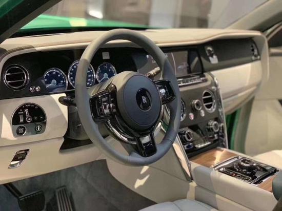 劳斯莱斯库里南 (配置|询价)区别于其他在售的劳斯莱斯车型,新车的进气格栅向上向前推高,让劳斯莱斯车标和欢庆女神傲然伫立于车头,王者风范十足,没毛病。在帕特农神庙式进气格栅和“眉”形日间行车灯上方,另外一条横向的线条贯穿,使得整个前脸庄重威严感十足。详情联系文章底部电话,电弧同微信