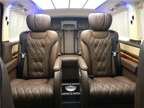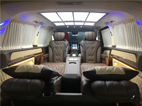奔驰威霆商务车改装后的乘坐舱更加舒适,换上了高级商务航空座椅。该车采用七座不仅仅,在第二、三排格局合理舒适,第二排为航空级首长席座椅,带电动按摩、旋转、通风、加热等八项舒适性调节功能。第三排可以根据需要放平就是一张舒适的双人床。