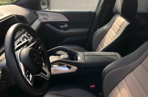2020款奔驰GLE450内饰则延续了现款S级 (配置|询价)的造型,用的是贯穿式中控台双屏设计,12.3英寸的双液晶显示屏带来的科技感爆强,并且搭载 了奔驰最新的MBUX人机交互系统,采用搪塑,皮革,实木,金属和碳纤维材质,三幅式平底方向盘动感十足,头顶一个全景天窗,座椅用的是双色搭配的运动风格座椅,舒适性和包裹性也比较好**20款奔驰GLE450整个内饰氛围更显豪华质感,相对简约的功能按键设计,也令操作更加简洁。新车方向盘集中了音响、电话及行车电脑的控制。奔驰GLE450车内整体视觉与中控台内饰格调保持一致,给驾乘者带来无尽的奢华享受,也尽显着奔驰的高档大气风范、华贵之美。