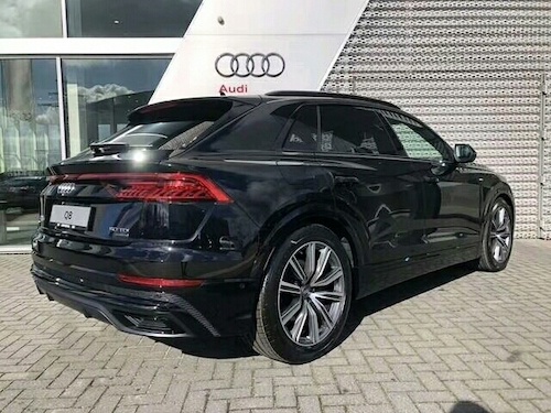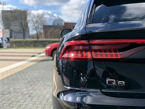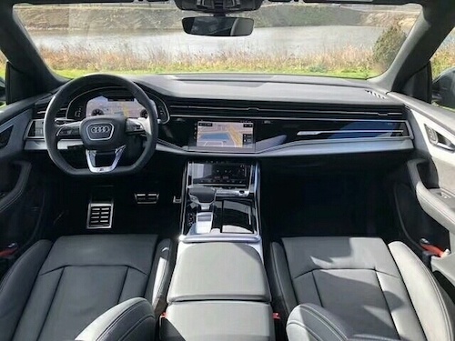 作为奥迪最新的旗舰SUV,Q8可视为Q7 (配置|询价)的轿跑版本,两者整体尺寸相当,一个运动个性,一个偏商务风。八边形进气格栅、溜背式车身、5双辐22英寸轮毂、贯穿式LED尾灯的设计,让Q8看上去更讨巧一些。内饰部分,新车还是延续了奥迪以往的水准,科技配置较为丰富,提供12.3英寸全液晶仪表,10.1/8.6英寸两块中控屏幕,上方屏幕用于控制车辆信息、娱乐系统以及导航系统,下方屏幕可控制座椅加热、空调等。