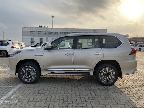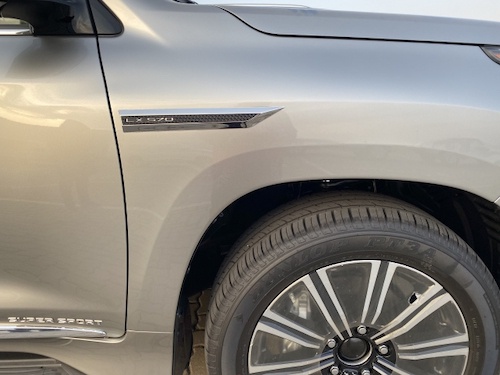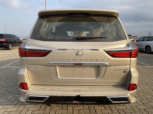 2020款中东版雷克萨斯LX570 限量版S(大包围):雷达测距、抬头显示、换挡拨片、铝制行李架、限量包(前后大包围、黑色大中网、钢制油门/刹车脚踏板、车门迎宾灯)、S限量花纹脚垫、后包围镀铬、镀铬尾喉、外置拖车钩、138升双油箱、遥控启动、车身防擦条、副驾驶灭火器、流水转向灯、金属漆、Logo地射灯、21轮、冰箱、天窗、智能卡、电眼、环影、后娱、底盘升降、前座椅通风加热(真皮)、导航、多功能桃木真皮方向盘、桃木内饰、航空照明脚踏、LED 氙灯、大灯清洗、迎宾灯、四区空调、三排电动、电尾门、ACC自适应巡航、后座椅通风、车道保持、并道辅助、二排遮阳帘、马克莱文森音响、后盖带LED灯。