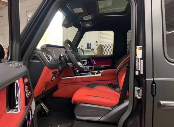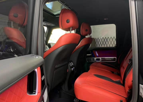 19款全新G63内饰方面,新G63保留了新G500的整体设计,除配色差异外,新车 还换装了全新造型的平底式AMG运动方向盘,其两侧配以打孔皮质包裹,下部镀铬装饰的造型也与新G 500明显不同,看上去十分战斗。此外,全液晶仪表盘+中控大屏的双12.3英寸屏幕设计在新车上也没有缺席,营造出了浓郁的科技感。