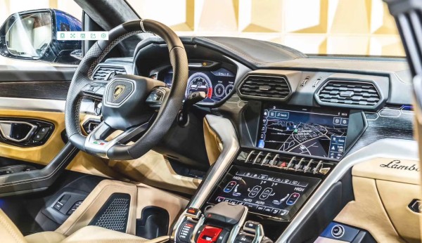 19款兰博基尼野牛SUV(URUS)有着航空的设计理念和以驾驶者为中心的设备概念均通过三重TFT显示屏(分别用于仪表板、娱乐信息以及带有手写辨识度虚拟键盘的舒适调节功能)得到体现,将驾驶者的需求放在了首位,并使驾驭者体验更加愉悦、充满享受感。