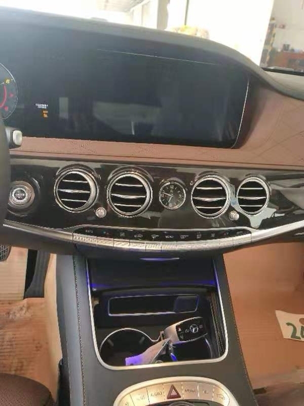 19款奔驰S450加长升级版升级版拥有超大号的后排沙发,能独立调节仰角,还带有自动调节高度和伸缩的腿托,后排乘客通过按键能变成一张舒适的躺椅。中控台上看不到太多的按键设计,基本上把所有的功能都融合到了多媒体显示屏当中,而只需一个旋钮就可以进行操作,而且全部都是中文显示,简单而又轻松。