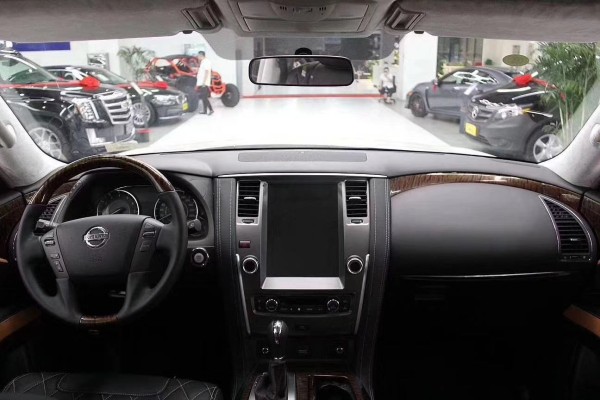 19款日产途乐Y62采用了豪华轿车惯用的四幅风向盘设计,粗细比较合手再加上真皮加实木的用料,手握感觉极佳。另外方向盘功能强大,集成了音响、空调控制及蓝牙车载免提系统,使驾驶者在行车中更为安全,做到手不离方向盘。同时方向盘加热功能,令驾驶者双手在寒冷的冬季也能得到最佳的呵护。17款日产途乐62Y内饰兼具了舒适性和功能性。仍然为三排座车型,内饰材质也更加的考究,使用了皮革,铝以及木纹样条作为点缀。