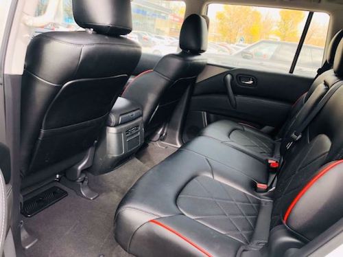 19款日产途乐Y62中东4.0内饰兼具了舒适性和功能性。仍然为三排座车型,内饰材质也更加的考究,使用了皮革,铝以及木纹样条作为点缀,以浅色调为主,营造出了轻松惬意的驾驶环境。全部完全遵循了游艇的设计风格,宽敞、舒适、豪华。中控部分的设计比较具有豪华感,标准日系豪华车的风格,BOSE音响是很多中高端车所选用的,音响效果不会让你失望。18款日产途乐中东版全新途乐采用了豪华轿车惯用的四幅风向盘设计,粗细比较合手再加上真皮加实木的用料,手握感觉极佳。另外方向盘功能强大,集成了音响、空调控制及蓝牙车载免提系统,使驾驶者在行车中更为安全,做到手不离方向盘。