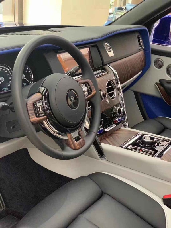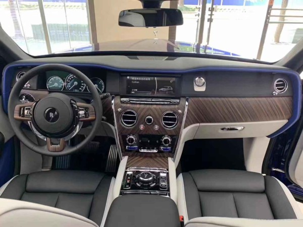 内饰融合了纯正的劳斯莱斯式的奢华和简洁,展现了对称的功能之美。中控面板的边框由手工打磨的金属条包裹。上部仪表板采用全新研发的现代“方格粒纹”黑色真皮包裹。