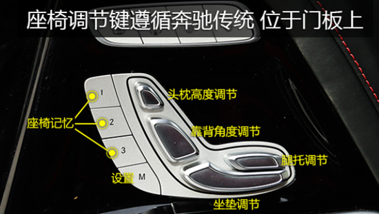2019款奔驰G63黑红搭配的座椅,运动氛围更强,相较于老款G63,座椅在舒适性、支撑性以及功能性上都有了很大的提升。座椅带有多项调节,集中在门板处,而腰部支撑和侧支撑也支持多级调节,但需要通过COMAND旋钮在屏幕中调节。
