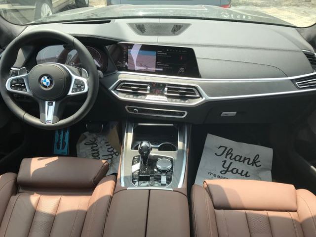 2019款美规宝马X7 3.0T 7融入最新家族式设计元素,内饰大部分区域由银色饰条及木质面板加以点缀, 中控区域为悬浮式触控显示屏,下方为空调出风口与实体功能按键,杯架处还加入可为饮品制冷或加热的功能,换装全新的水晶电子档把。除此之外,新车还配备了Vernasca皮革内饰,四区气候控制系统及三段式全景天窗。