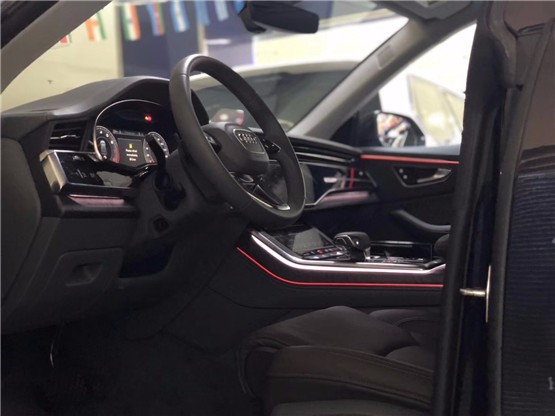 19款奥迪Q8的大灯设计是必须要讲的!标配是全LED光源,选装的HD矩阵式LED大灯中各有24个独立LED,而大灯的边缘装有七短两长的LED发光原件,进一步将视觉焦点向外转移,试图不通过宽体套件来增加SUV的车身高度。奥迪Q8没有在前后灯组之间厚此薄彼,同样采用三维设计的尾灯也可选装HD矩阵式LED,并有12段独特灯带。12段灯带不仅可提供动态转向信号,还可在车门上锁和开锁时闪烁。