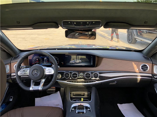 2018款奔驰S63 AMG内部车内装饰也非常人性化,享受飞机头等舱的体验。中控台采用皮质材质包裹,配合大面积的碳纤饰板使其更彰显运动化特性。三幅平底运动型方向盘两侧采用了打孔真皮材料包裹,握起来比摩擦力更强,防滑性更出色
