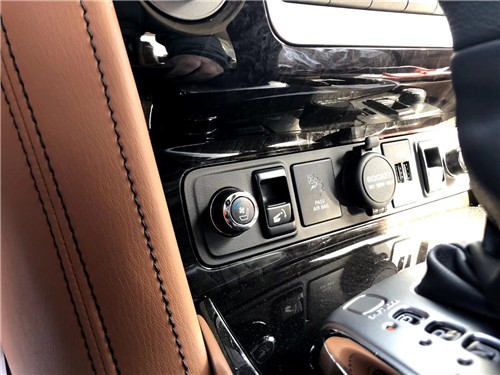 19款英菲尼迪QX80惯用的四幅风向盘设计,粗细比较合手再加上真皮加实木的用料,手握感觉极佳。另外方向盘功能强大,集成了音响、空调控制及蓝牙车载免提系统,使驾驶者在行车中更为安全,做到手不离方向盘。内饰材料高档半苯胺皮革就是其中之一,车门装饰也将改良。